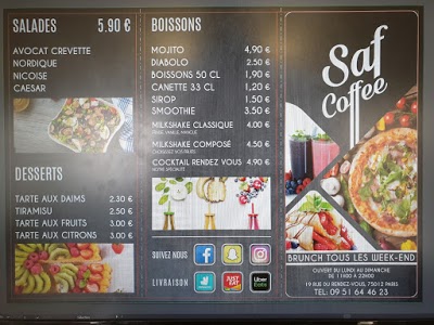 Au Département de Paris Paris vous trouverez Saf Coffee. Bienvenue au restaurant Saf Coffee notre système lui donne une note de 4.4 étoiles. Ça vaut le coup d'essayer!
