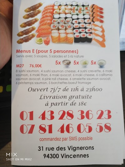 Au Rue des Vignerons Paris vous trouverez Fushan Sushi. Bienvenue au restaurant Fushan Sushi notre système lui donne une note de 4 étoiles. Ça vaut le coup d'essayer!