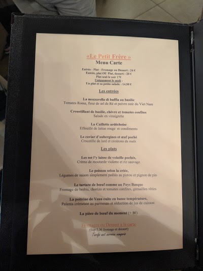 Bienvenue au restaurant Le Petit Frere qui se situe au Rue Masséna. Ce restaurant est noté 4.5/5 sur notre site internet. Découvrez Le Petit Frere et dites nous ce que vous pensez à travers des commentaires et des photos !