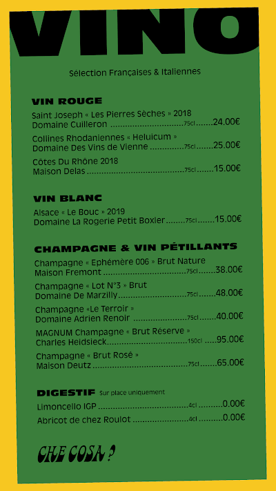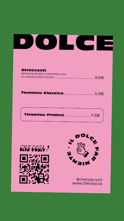 Bienvenue au restaurant Che Cosa qui se situe au Place du Commandant Arnaud. Ce restaurant est noté 5/5 sur notre site internet. Découvrez Che Cosa et dites nous ce que vous pensez à travers des commentaires et des photos !
