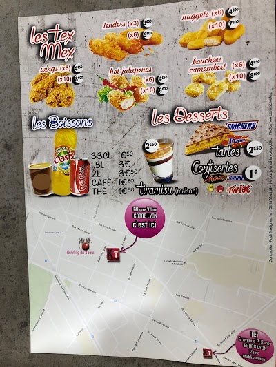 Bienvenue au restaurant King Tacos urbain food qui se situe au Rue Villon. Ce restaurant est noté 4.1/5 sur notre site internet. Découvrez King Tacos urbain food et dites nous ce que vous pensez à travers des commentaires et des photos !